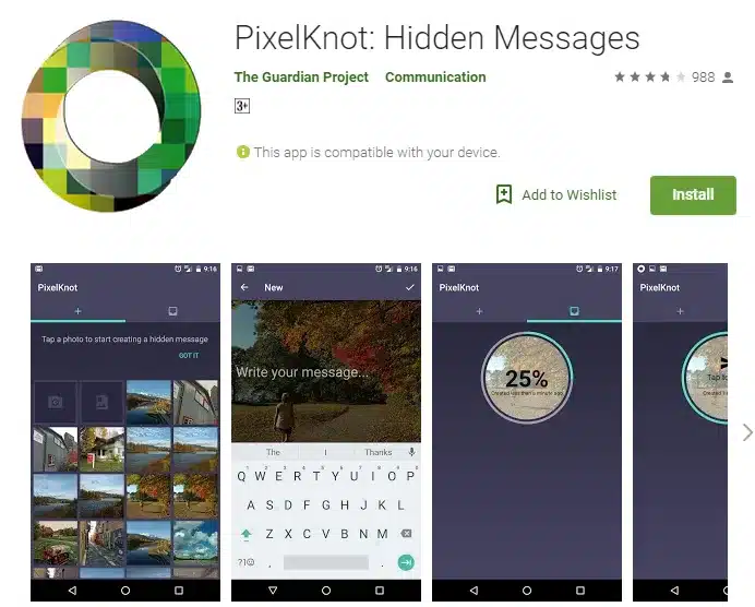 Applications like pixelknot Can shroud your mystery message inside a picture Which you can then-secret phrase secure and send to your the receipt over Whatsapp or email All they will see a straightforward picture But when they open it with pixelknot and enter right secret key Well, there you have it The mystery message.